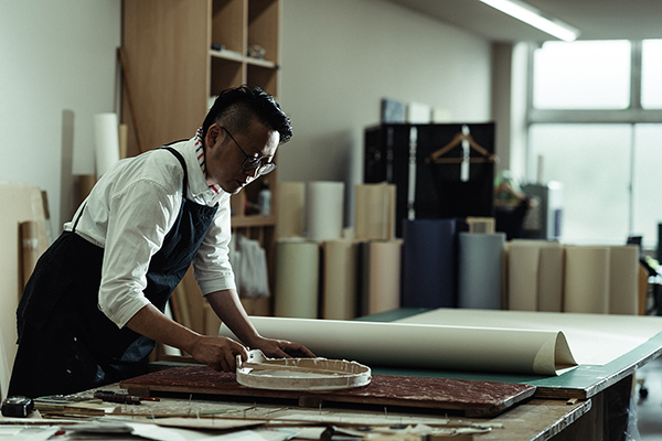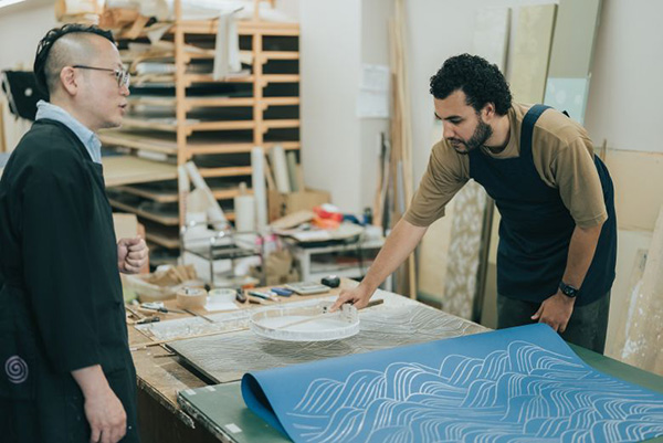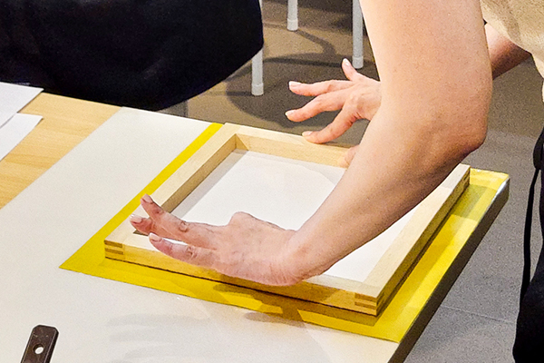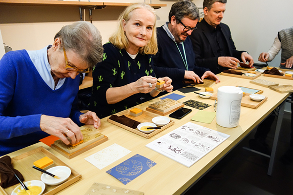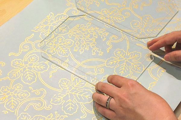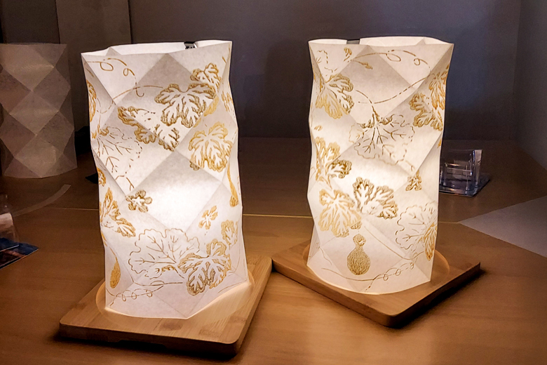 光を透かす強化紙に文様を摺り、立体的な陰影が美しいシェードに仕立てる体験です。