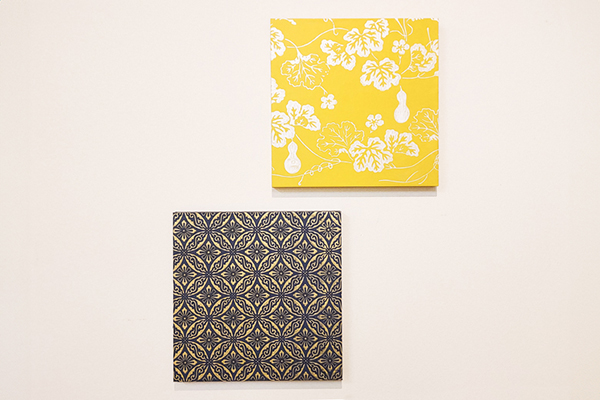 和紙(鳥の子紙)に京からかみ文様を摺り、パネルを作る体験です。月替わり3種類の版木を使って唐紙を2枚摺り、そのうちの1枚をパネルにします。